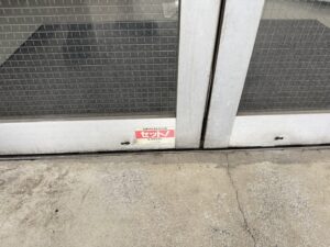 お問い合わせの際に「宝箱みたいな鍵」と言われそちらが刺しても回らないとの事でしたのでおそらくあの鍵かな?と思い至急訪問しました。2箇所鍵穴がありますが自動扉でもあるので片方だけ開いていても扉を開ける事が出来ません。