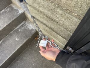 写真の通り南京錠になりますがどうやらご事情がありイタズラでチェーンロックをされてしまったそうです。