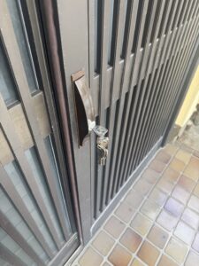 このタイプは既に同一タイプの鍵をお取付していたので、今回はそのままの穴を利用し調整作業も行いスムーズに鍵を交換する事ができました。